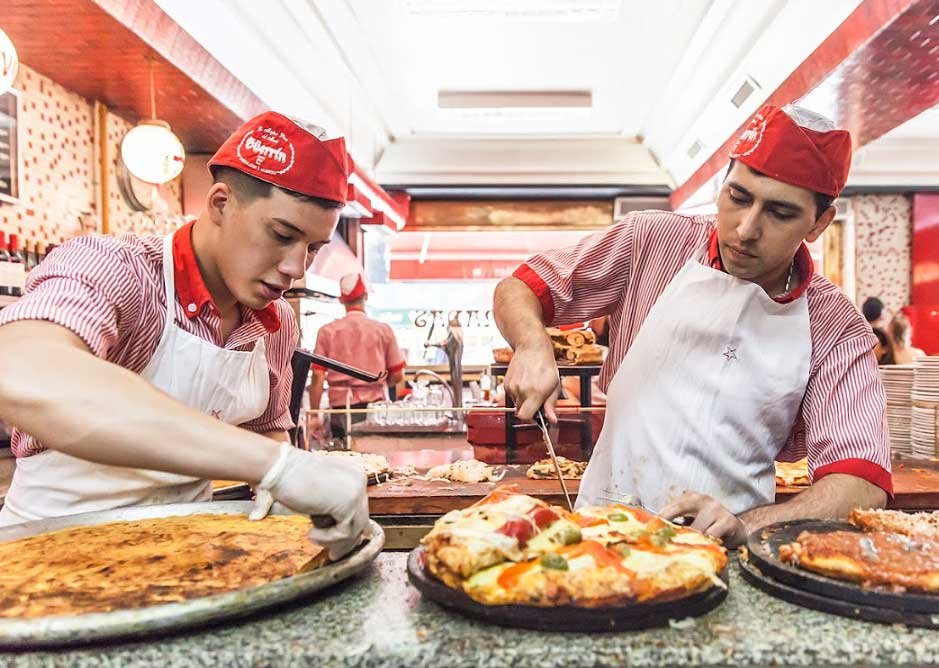 Prueba una porción de pizza en la Av. Corrientes, donde se encuentra las pizzerías históricas de Buenos Aires.