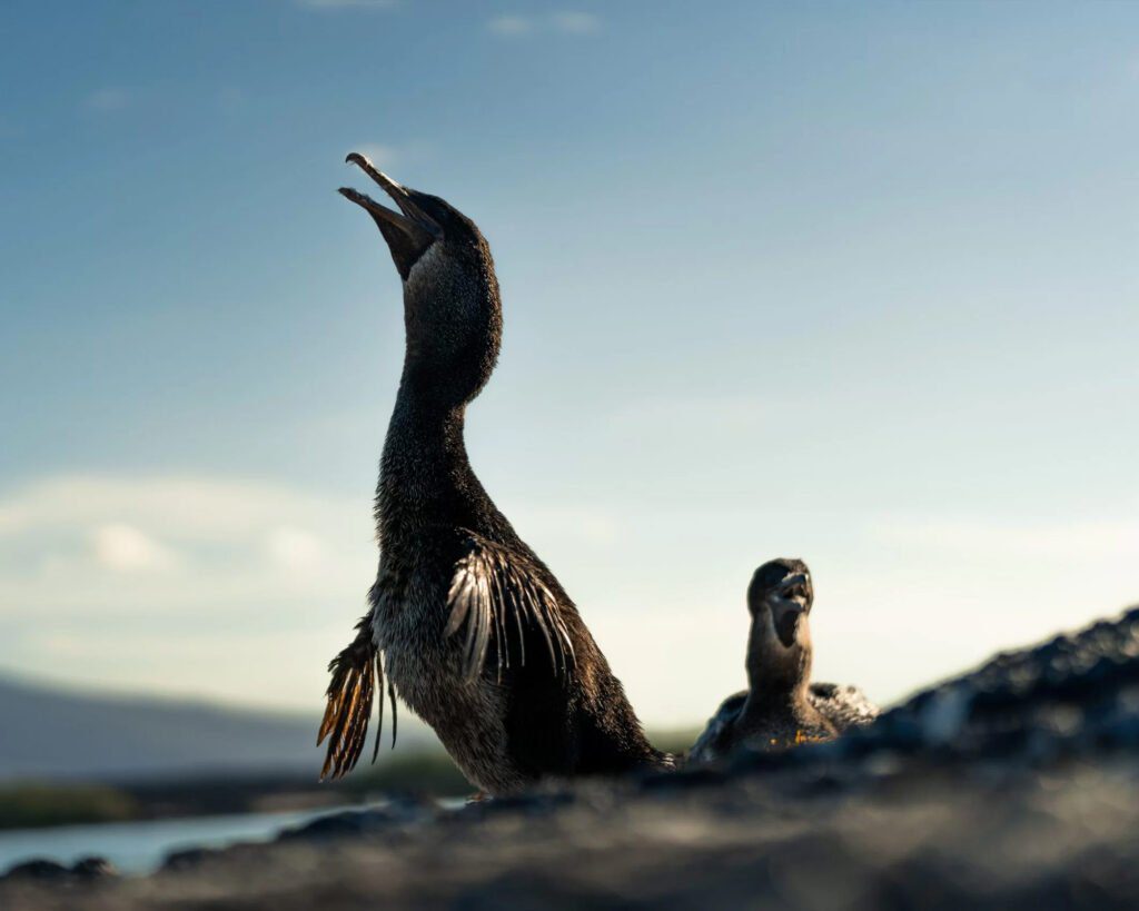 - Flightless cormorant (Phalacrocorax harrisi): The only cormorant in the world that lost the ability to fly. Their tiny wings, useless for air but perfect underwater, remind you that evolution doesn’t always add—sometimes it removes the unnecessary to perfect the essential.